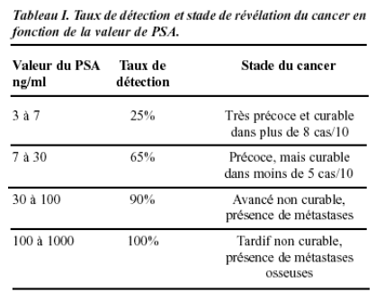 La HAS a publié en 2010 une analyse des essais internationaux de dépistage du cancer de la prostate32 et en 2012 une revue systématique sur les facteurs de risque de cancer de la prostate et la pertinence du dépistage de ce cancer par dosage du PSA chez les hommes à haut risque de survenue de ce cancer. Faisant suite à cette analyse, la HAS a confirmé sa non-recommandation du dépistage systématique du cancer de la prostate en population générale comme dans les populations à haut risque sur les éléments suivants : • l’histoire naturelle de la maladie est mal connue, en particulier on ne sait pas reconnaître, parmi les cancers asymptomatiques, ceux qui resteront latents et ceux qui évolueront ; • la balance bénéfice/risque est en défaveur du dépistage du cancer de la prostate et les essais internationaux de dépistage n’ont apporté aucun élément sur le bénéfice potentiel de la pratique de ce dépistage ; • il n’est pas démontré que la détection précoce soit plus avantageuse pour les hommes à risque élevé (les cancers prostatiques chez ces sujets n’évoluant pas différemment de ceux des sujets à risque normal) ; • des facteurs de risque génétiques et environnementaux ont été identifiés (antécédents familiaux de cancer de la prostate chez des parents du 1er degré, origine africaine, exposition à certains agents chimiques), mais il n’est pas possible de définir un niveau de risque chez les sujets concernés.